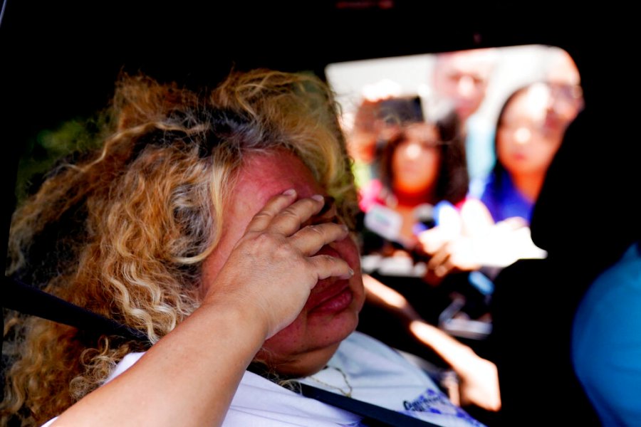 Grace Valencia, great aunt of shooting victim Uziyah Garcia, talks to the media from a vehicle after picking up a copy of the Texas House investigative committee report on the shootings at Robb Elementary School, Sunday, July 17, 2022, in Uvalde, Texas. (AP Photo/Eric Gay)
