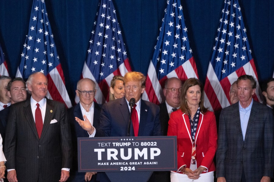 - He never mentioned former Ambassador Nikki Haley by name and pivoted to taking on President Biden.