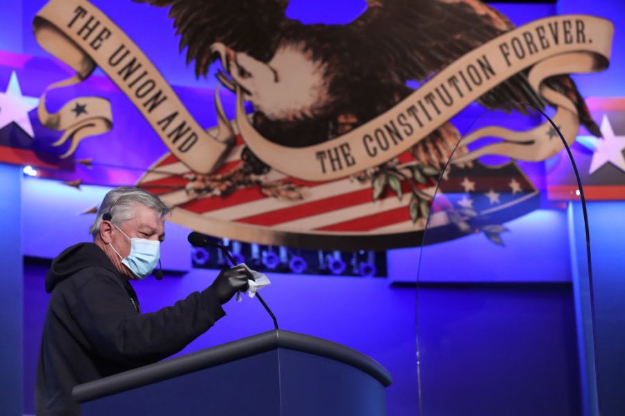 “The plexiglass was put into place, and through consultation with Dr. (Anthony) Fauci, HCA no longer felt it was necessary to make such a recommendation for the plexiglass,” Wollack said. “In response to that, both campaigns agreed to that recommendation and so there was no longer any need for the plexiglass.”