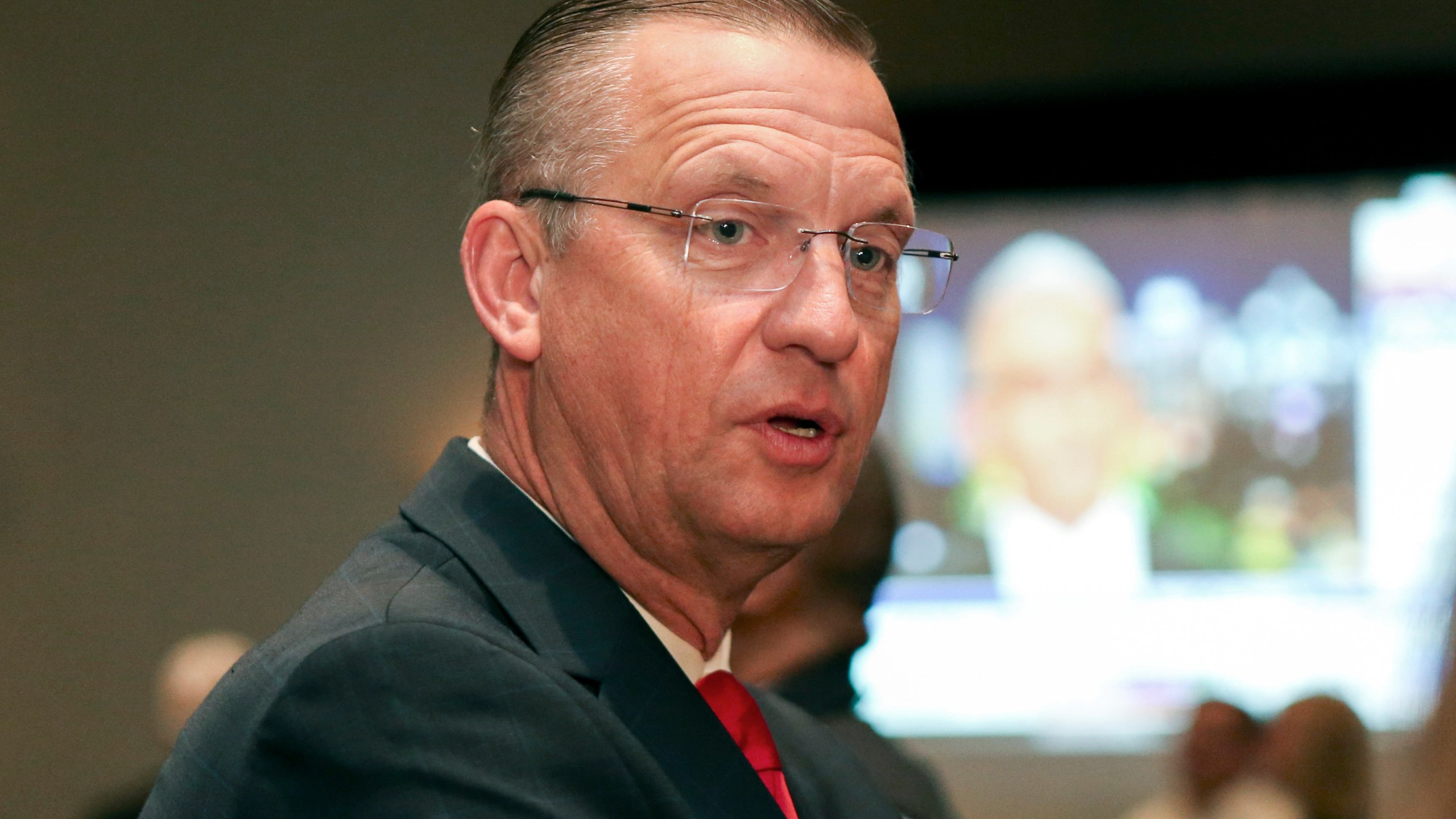 Republican candidate for Senate Rep. Doug Collins attends an election night watch party in Buford, Ga., Tuesday, Nov. 3, 2020. (AP Photo/Brett Davis)