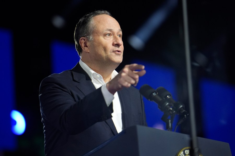 Harris’s husband, second gentleman Doug Emhoff, spoke before Oprah.