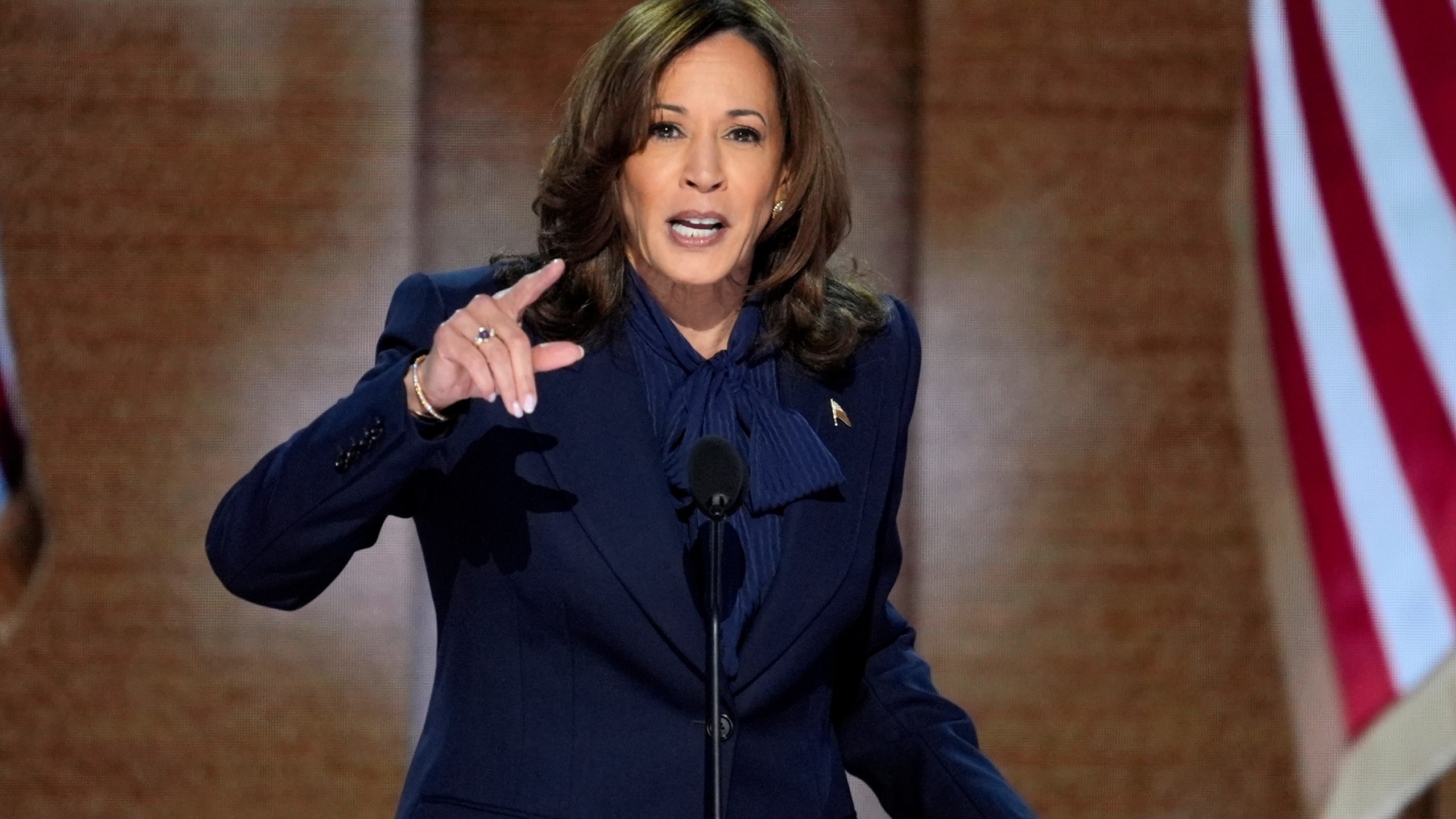 Democratic presidential nominee Vice President Kamala Harris speaks during the Democratic National Convention Thursday, Aug. 22, 2024, in Chicago. (AP Photo/J. Scott Applewhite)