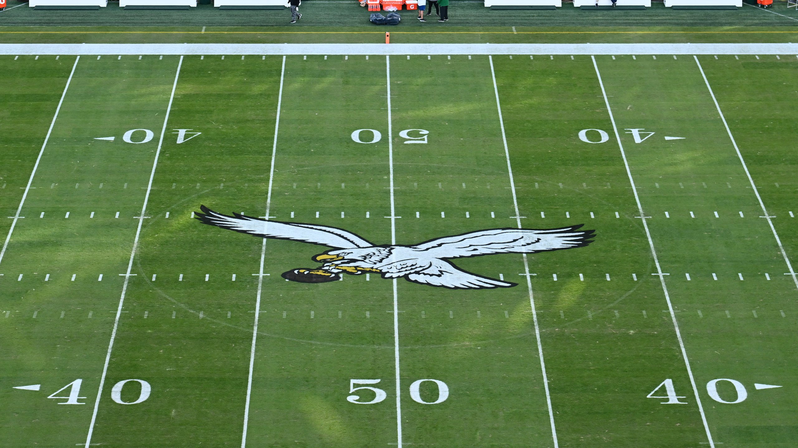 PHILADELPHIA, PA – OCTOBER 22: A view of the Philadelphia Eagles logo before the game between the Miami Dolphins and Philadelphia Eagles on October 22, 2023 at Lincoln Financial Field in Philadelphia, PA. (Photo by Kyle Ross/Icon Sportswire via Getty Images)