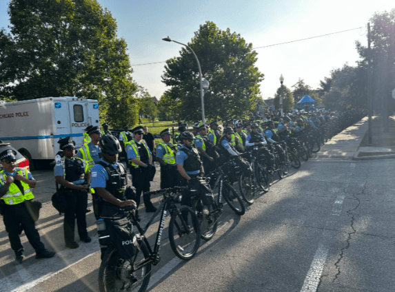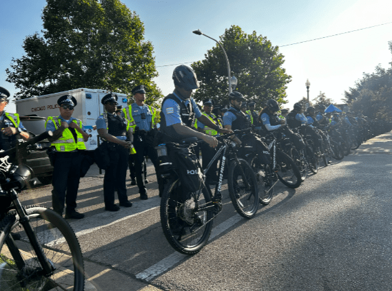 Members of the Chicago chapter of the National Lawyers Guild called the police response aggressive. A volunteer attorney for the National Lawyers Guild told the Chicago Sun-Times that people were surrounded, corralled and it was “nearly impossible for people to leave.”