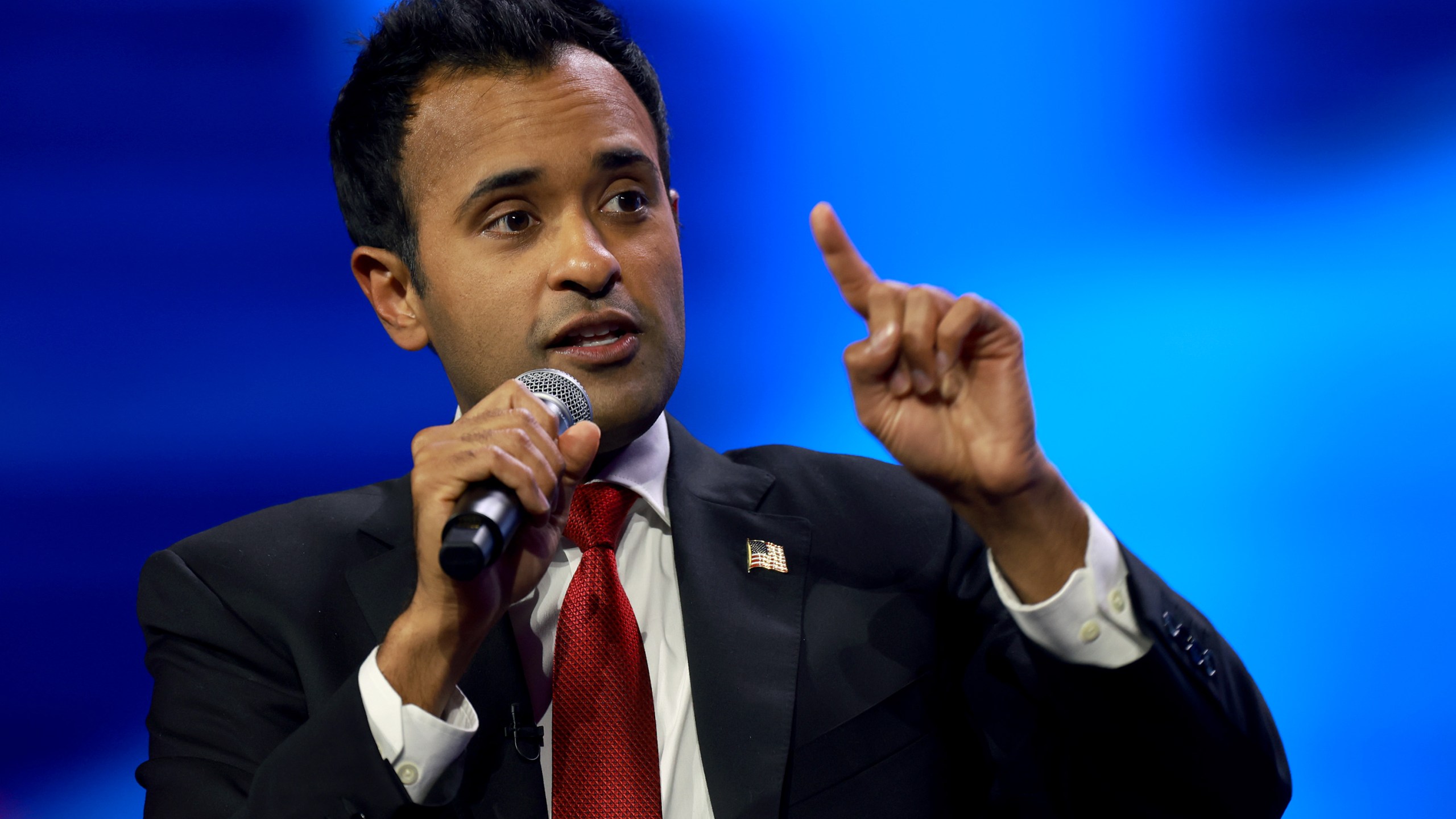 Vivek Ramaswamy speaks at the opening of the Turning Point Action conference on July 15, 2023 in West Palm Beach, Florida. Former President Donald Trump was scheduled to speak at the event held in the Palm Beach County Convention Center. (Photo by Joe Raedle/Getty Images)