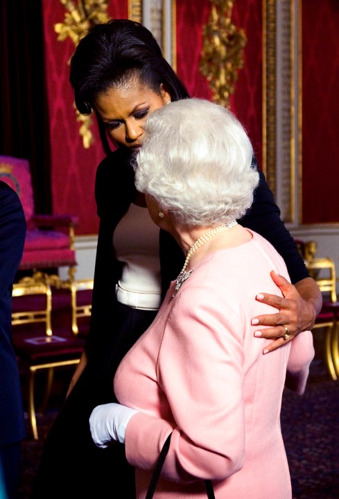 It was there that first lady Michelle Obama broke protocol by briefly putting an arm around the queen’s back as they commiserated about their achy feet. It’s generally a no-no to touch the queen, but she returned Mrs. Obama’s gesture.