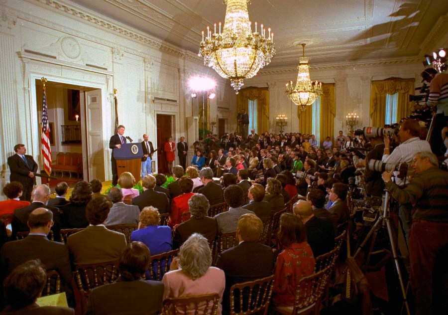 Contrast that with a Feb. 6, 1998, Clinton news conference the month after he lied in a televised speech that “I did not have sexual relations with that woman, Miss Lewinsky,” as the evidence built for his impeachment that fall.