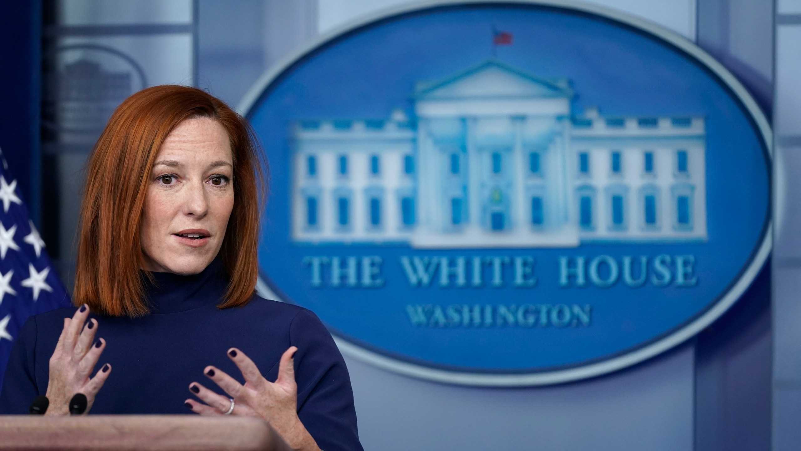White House press secretary Jen Psaki speaks during a press briefing at the White House, Monday, Feb. 8, 2021, in Washington. (AP Photo/Patrick Semansky)
