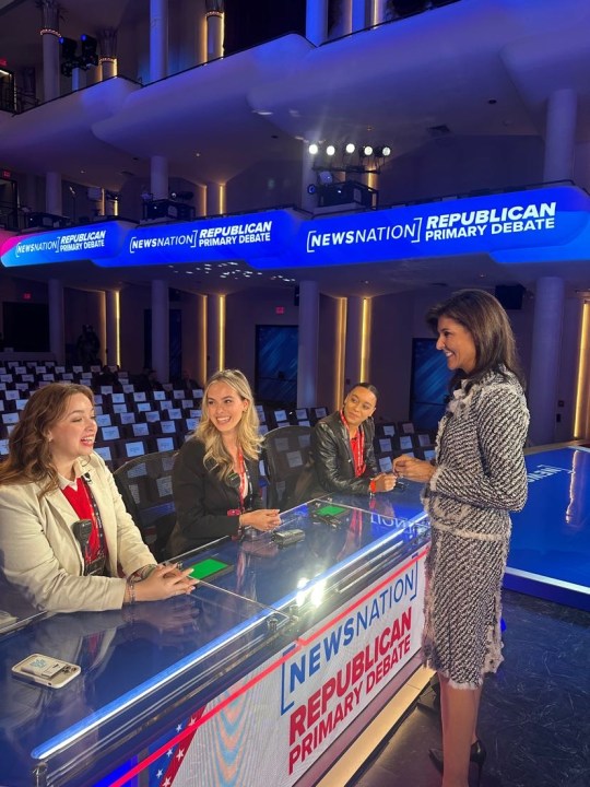 Graham, political science and media major Jenna Daniel and Mckenzie Knight, a sophomore public relations and English major, sat in for the moderators as former South Carolina Governor Nikki Haley toured the debate stage Wednesday afternoon ahead of the showdown.