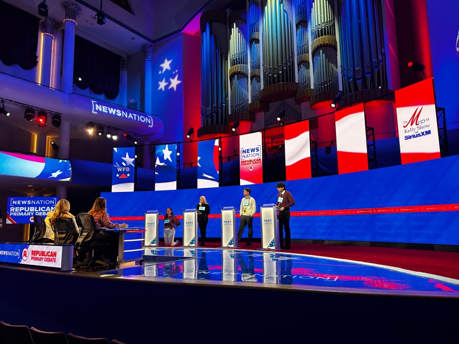Tuesday evening, they even stood in for the candidates and faced the real moderators, Megyn Kelly, Elizabeth Vargas and Eliana Johnson while mics were tested and camera shots were lined up. Tony Cortes, a media major, stood in for Vivek Ramaswamy and fielded questions from Kelly on the intricacies of Alabama football.