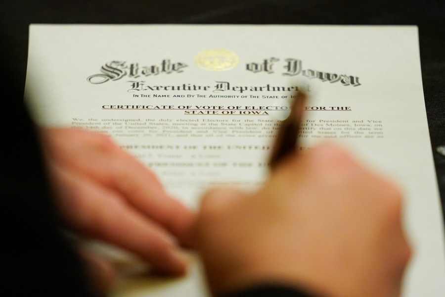 After Iowa’s six Republican electors formally cast votes for Trump, Iowa Secretary of State Paul Pate and elector was unwilling to declare Biden the president-elect, When asked about Trump’s pending legal challenges he said, “You’ve got to let it work itself through. The last thing you want is for Americans to feel they were shortchanged on their vote.”