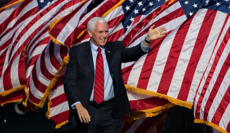 AUGUSTA, GA – DECEMBER 10: Vice President Mike Pence waves to the crowd as he arrives to a rally in support of Sen. David Purdue (R-GA) and Sen. Kelly Loeffler (R-GA) on December 10, 2020 in Augusta, Georgia. The “Defend the Majority” rally comes ahead of a January 5th runoff election for Purdue who is facing Democratic candidate Jon Ossoff. Loeffler was unable to attend the event. (Photo by Jessica McGowan/Getty Images)