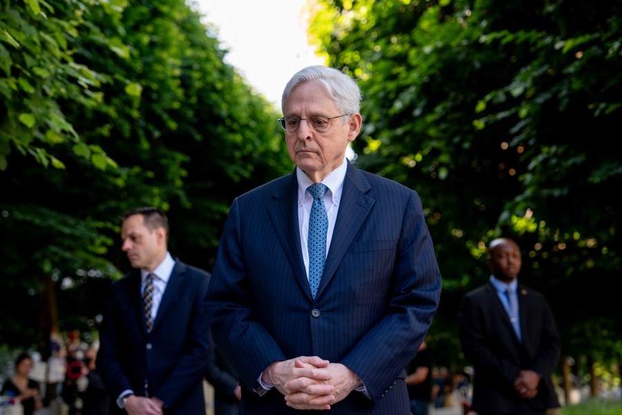 WASHINGTON, DC – MAY 13: U.S. Attorney General Merrick Garland visits the National Law Enforcement Officers Memorial to commemorate the start of Police Week on May 13, 2024 in Washington, DC. May 15th was proclaimed as Peace Officers Memorial Day and the week it falls in as Police Week by President John F. Kennedy decades ago, but what started with a small group in the early 1980s has grown to thousands gathering annually in Washington, DC to reflect, honor and support police officers. (Photo by Andrew Harnik/Getty Images)