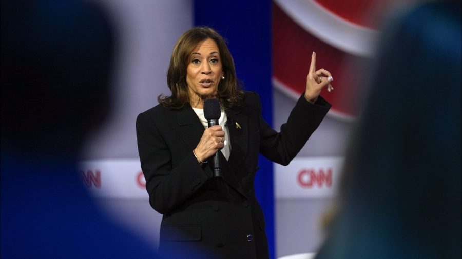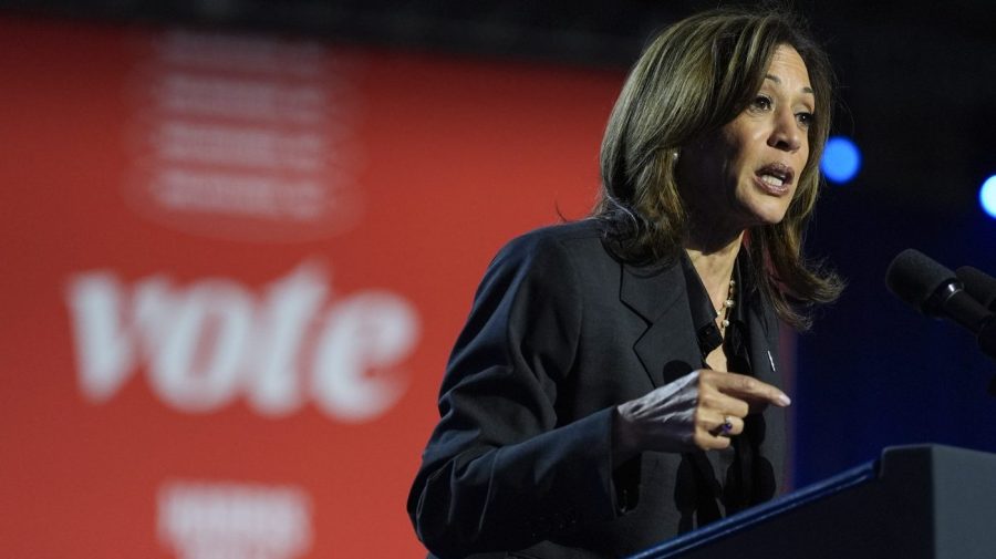 • FILE – Vice President Kamala Harris, the Democratic presidential nominee, speaks at the 2024 Democratic National Convention, Aug. 22, 2024 in Chicago. (AP Photo/Paul Sancya, File)