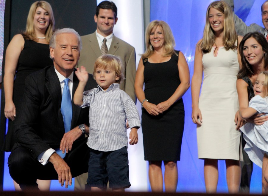 Democratic vice presidential candidate Sen. Joe Biden, D-Del., left, and other family members watch Biden’s grandson Hunter wave from the stage at the Democratic National Convention in Denver, Wednesday, Aug. 27, 2008. (AP Photo/Jae C. Hong)