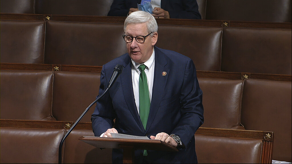 In this image from video, Rep. Paul Mitchell, R-Mich., speaks on the floor of the House of Representatives at the U.S. Capitol in Washington, Thursday, April 23, 2020. Mitchell said Monday, Dec. 14, 2020 he is leaving the Republican Party and becoming an independent to protest efforts to overturn Democrat Joe Biden’s victory over President Donald Trump. (House Television via AP)