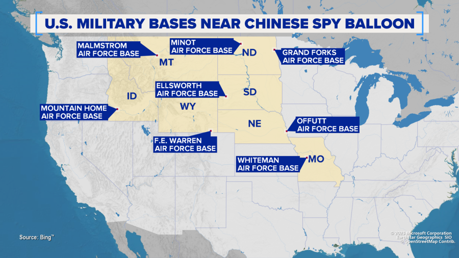 There are legitimate concerns about the balloon floating over Montana as there are three nearby airbases that are known to have long-range nuclear missile silos: Malmstrom Air Force Base about four hours north of Billings, Minot Air Force Base to the east in North Dakota and Francis E. Warren Air Force Base, just south in Wyoming.