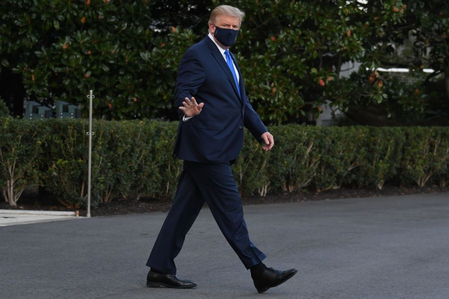 US President Donald Trump walks to Marine One prior to departure from the South Lawn of the White House in Washington, DC, October 2, 2020, as he heads to Walter Reed Military Medical Center, after testing positive for Covid-19. – President Donald Trump will spend the coming days in a military hospital just outside Washington to undergo treatment for the coronavirus, but will continue to work, the White House said Friday (Photo by SAUL LOEB / AFP) (Photo by SAUL LOEB/AFP via Getty Images)