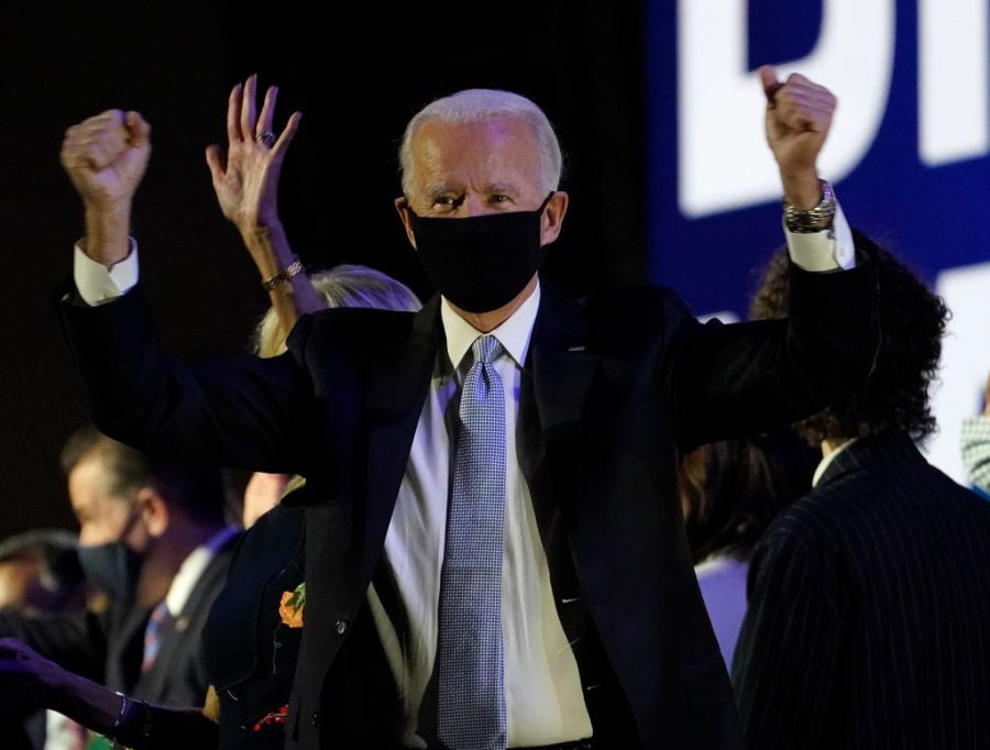 WILMINGTON, DELAWARE – NOVEMBER 07: President-elect Joe Biden addresses the nation from the Chase Center November 07, 2020 in Wilmington, Delaware. After four days of counting the high volume of mail-in ballots in key battleground states due to the coronavirus pandemic, the race was called for Biden after a contentious election battle against incumbent Republican President Donald Trump. (Photo by Tasos Katopodis/Getty Images)