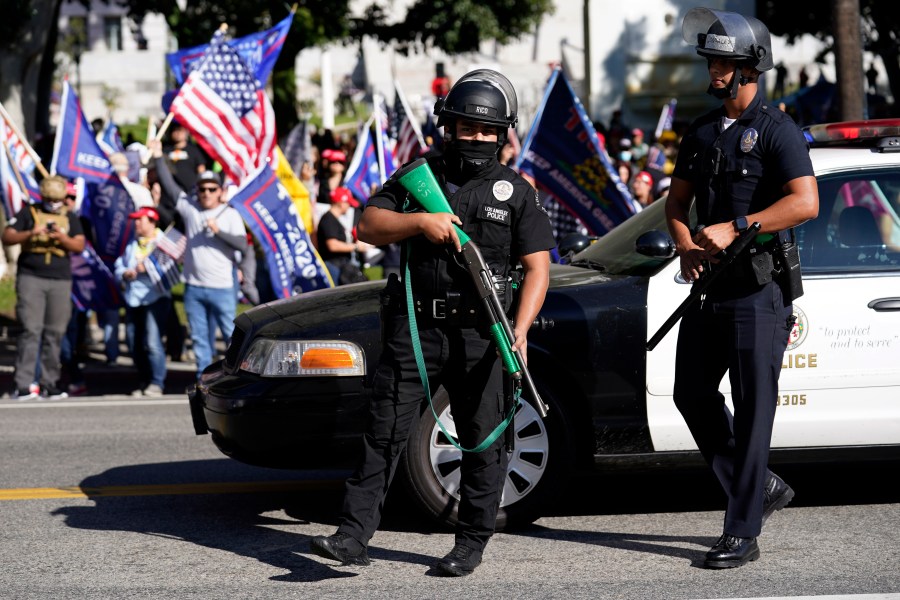 In Washington state, protesters broke through a gate at the governor’s mansion and dozens of people gathered on the lawn for about 30 minutes before being cleared from the area. The crowd, some of whom were armed, repeated baseless allegations of election fraud. The State Patrol said that Gov. Jay Inslee “and his family are in a safe location.”