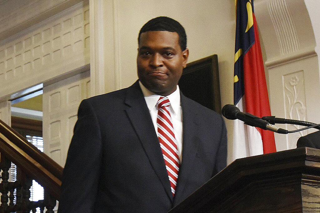 FILE – In this Jan. 3, 2017 file photo, Michael Regan listens as North Carolina Gov. Roy Cooper announces that Regan will lead the Department of Environmental Quality in North Carolina, at the Executive Manson in Raleigh, N.C. President-elect Joe Biden has picked an experienced but not widely known state regulator, Michael Regan of North Carolina, to lead the Environmental Protection Agency. Regan is head of North Carolina’s environmental agency. (Chuck Liddy/The News &Observer via AP)
