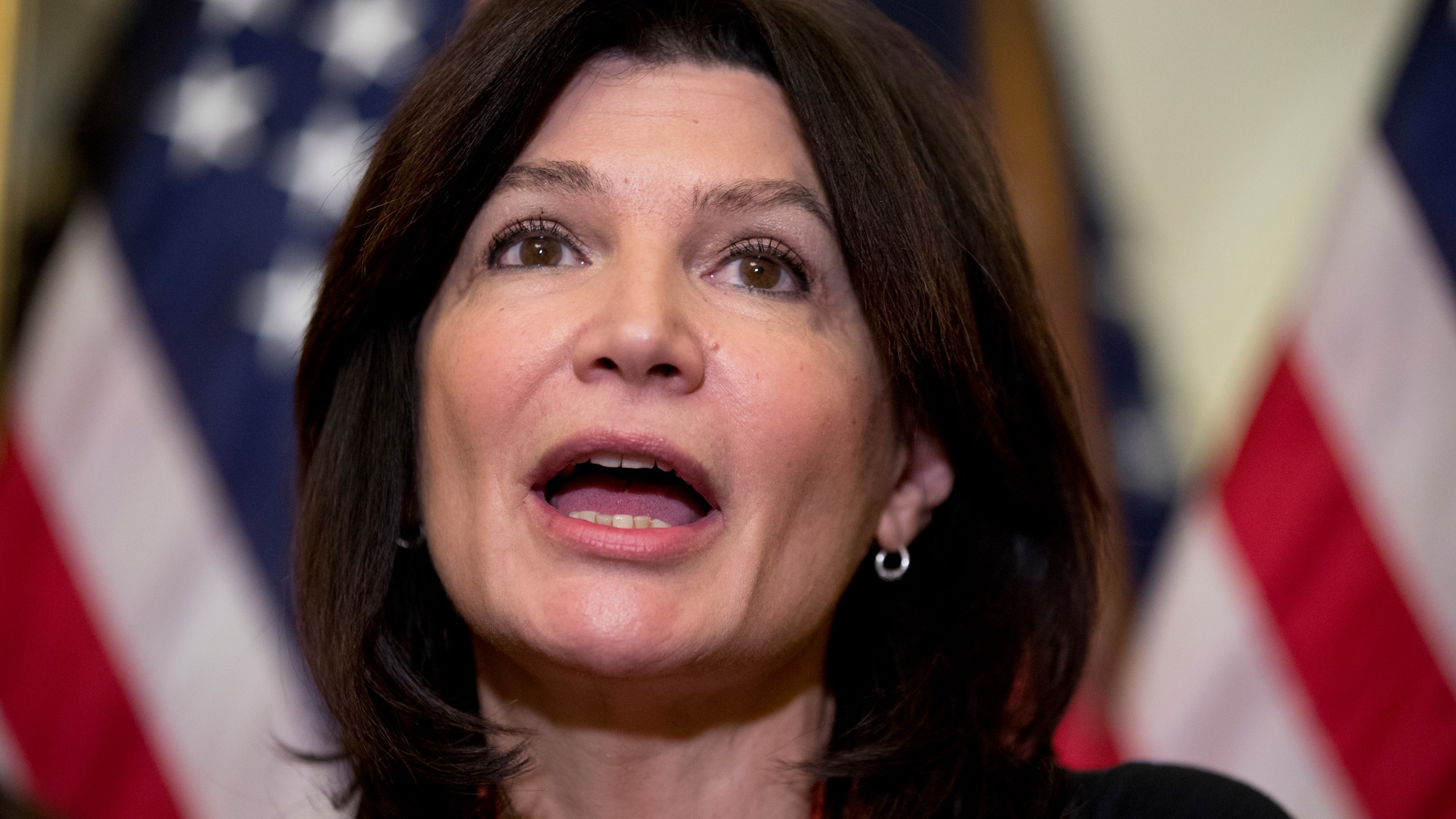 FILE – In this Nov. 1, 2017, file photo, National Education Association President Lily Eskelsen Garcia speaks at a news conference on American labor on Capitol Hill in Washington. (AP Photo/Andrew Harnik, File)