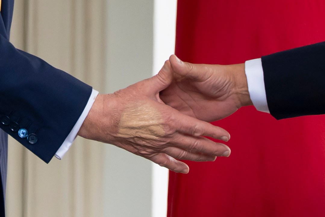 The bruising on Trump’s hands is “consistent with minor soft tissue damage from frequent handshaking,” Trump’s physician said, according to Leavitt.