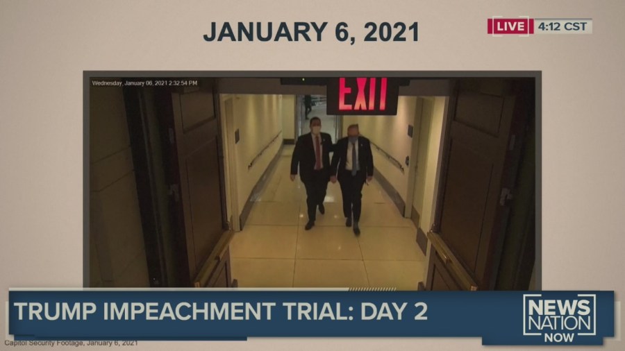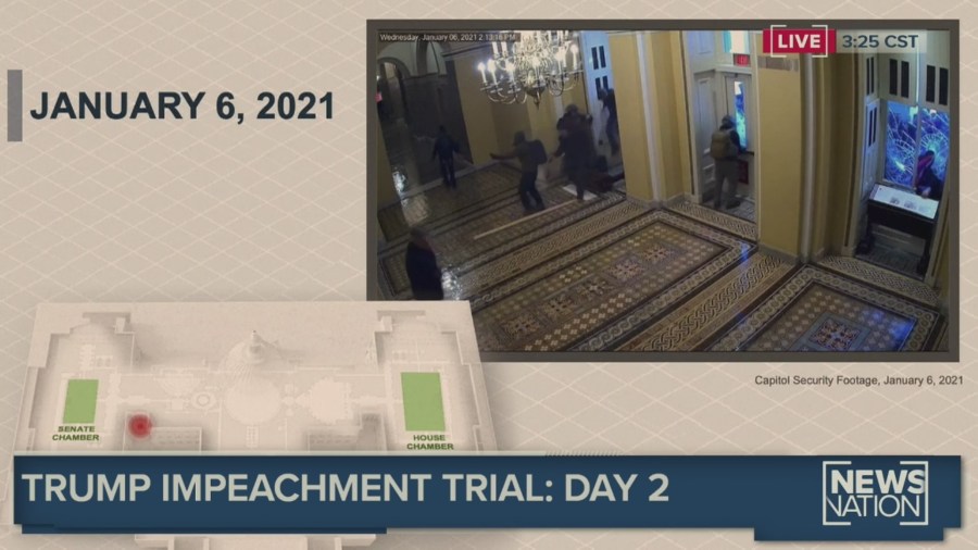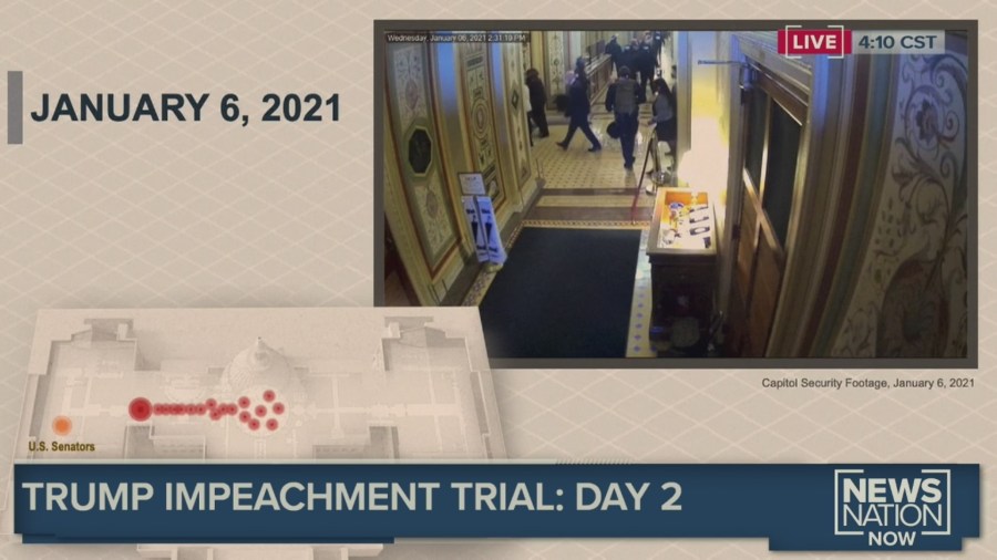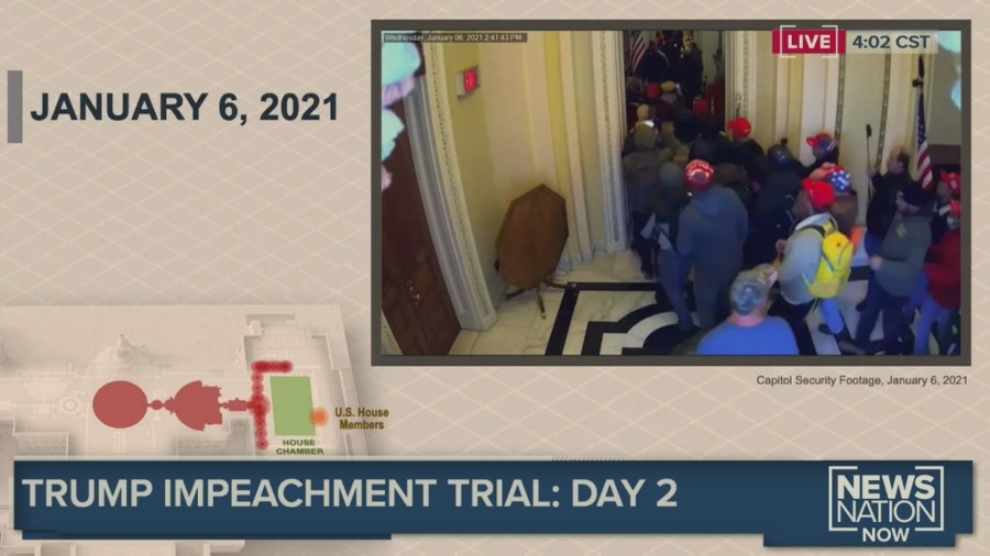 WASHINGTON (NewsNation Now) — Previously unseen security camera footage from inside the Capitol during the siege on Jan. 6, 2020, was shown Wednesday during former President Donald Trump’s impeachment trial.