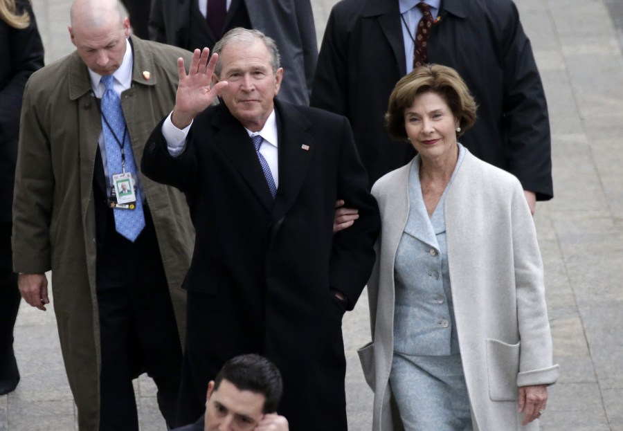 FILE: Former U.S. President George W. Bush and wife Laura Bush arrive for the 58th presidential inauguration in Washington, D.C., U.S., on Friday, Jan. 20, 2017 (John Angelillo/Pool via Bloomberg).