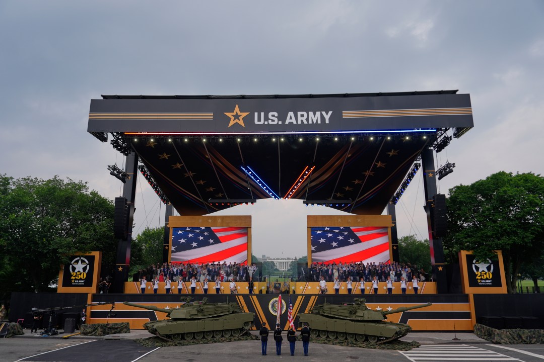 A military parade commemorating the Army’s 250th anniversary, coinciding with President Donald Trump’s 79th birthday, Saturday, June 14, 2025, in Washington. (AP Photo/Stephanie Scarbrough)