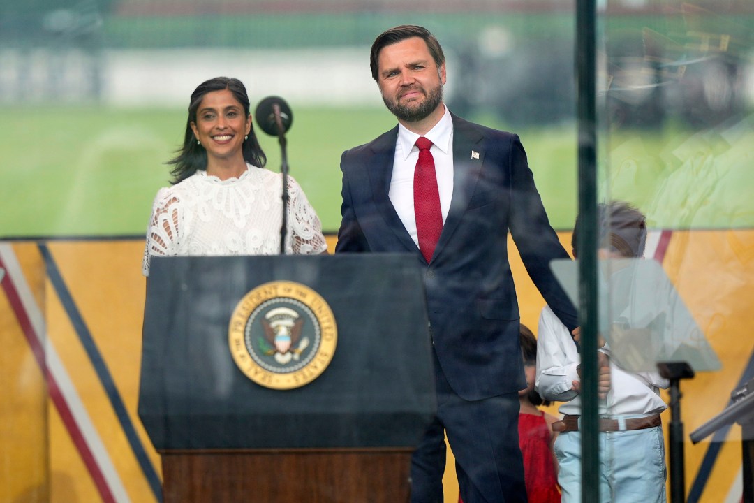 Vice President JD Vance and second lady Usha Vance, with their children, arrive for a military parade commemorating the Army’s 250th anniversary, coinciding with his 79th birthday, Saturday, June 14, 2025, in Washington. (AP Photo/Julia Demaree Nikhinson)