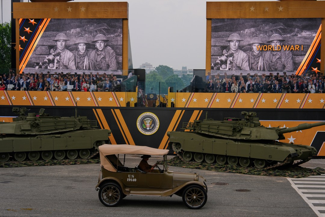 A World War I era vehicle passes the reviewing stand as President Donald Trump attends a military parade commemorating the Army’s 250th anniversary, coinciding with his 79th birthday, Saturday, June 14, 2025, in Washington. (AP Photo/Julia Demaree Nikhinson)