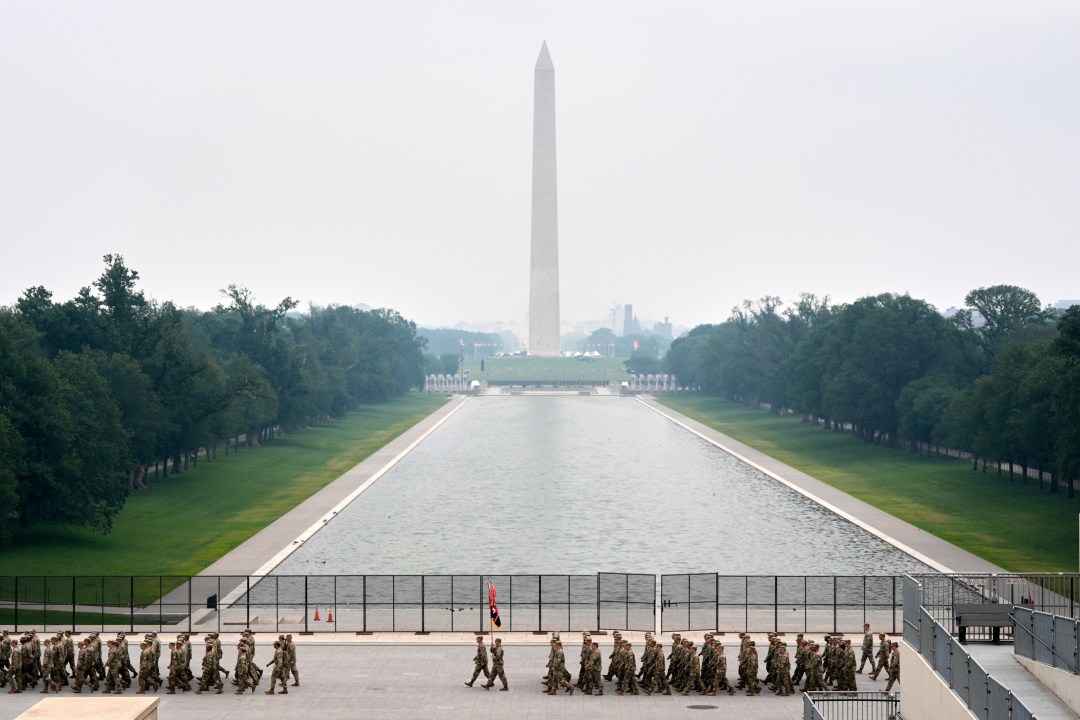 A military parade commemorating the Army’s 250th anniversary, coinciding with President Donald Trump’s 79th birthday, Saturday, June 14, 2025, in Washington. The Washington Monument stands center. (AP Photo/Stephanie Scarbrough)