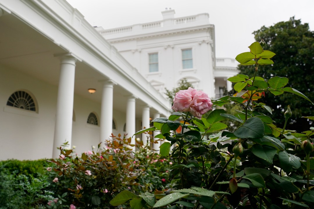 A rose is seen as journalists tour the restored Rose Garden at the White House in Washington, Saturday, Aug. 22, 2020. First Lady Melania Trump will deliver her Republican National Convention speech Tuesday night from the garden, famous for its close proximity to the Oval Office. The three weeks of work on the garden, which was done in the spirit of its original 1962 design, were showcased to reporters on Saturday. (AP Photo/Susan Walsh)