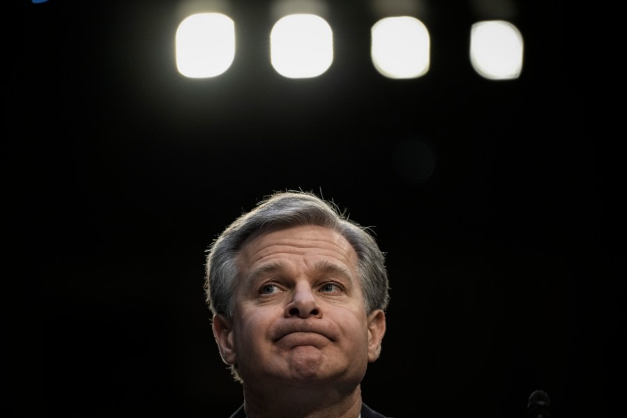WASHINGTON, DC – MARCH 8: FBI Director Christopher Wray testifies during a Senate Intelligence Committee hearing concerning worldwide threats, on Capitol Hill March 8, 2023 in Washington, DC. The leaders of the intelligence agencies testified on a wide range of issues, including China, Covid-19 origins, and TikTok. (Photo by Drew Angerer/Getty Images)
