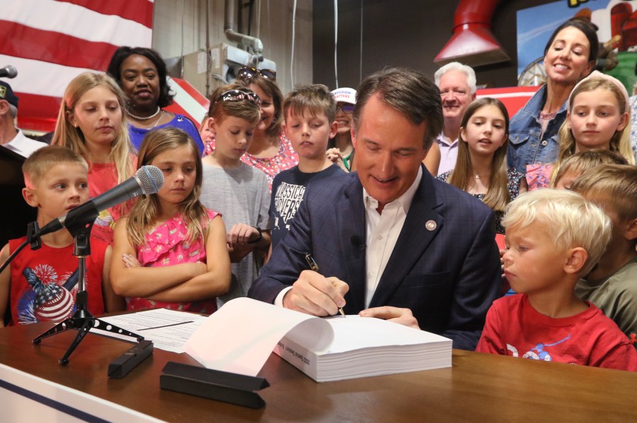 RICHMOND, Va. (AP) — To promote the recently signed Virginia budget and its array of tax cuts, Gov. Glenn Youngkin hosted two high-energy campaign-style celebrations, complete with bright lighting, throngs of supporters and a booming playlist that harkened back to his winning run last year.