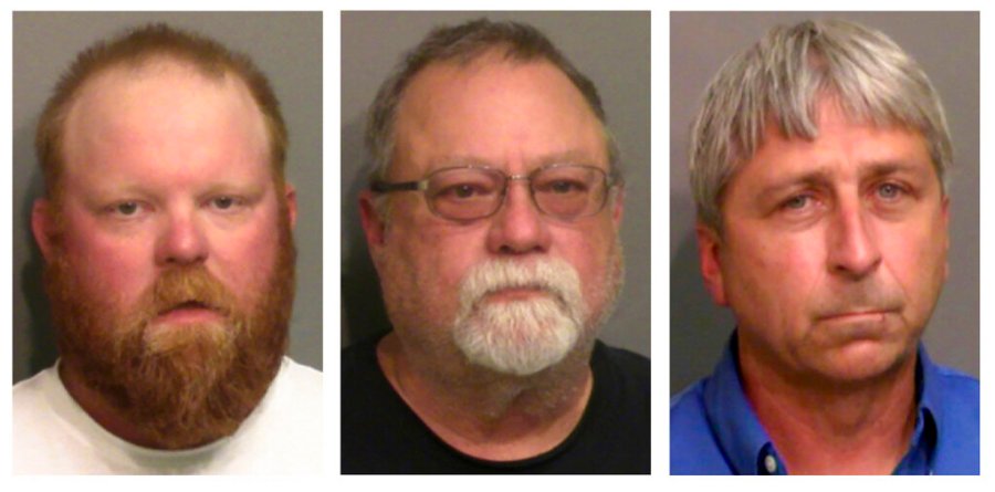 This combo of booking photos provided by the Glynn County, Ga., Detention Center, shows from left, Travis McMichael, his father Gregory McMichael, and William “Roddie” Bryan Jr. (Glynn County Detention Center via AP, File)