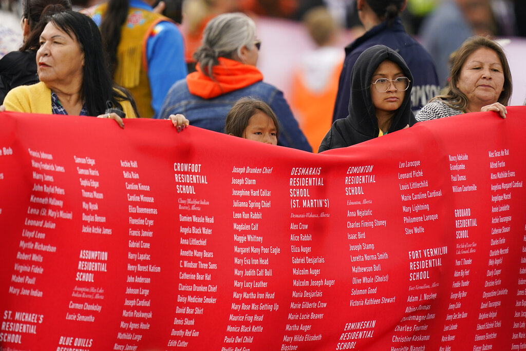 Francis’ words went beyond his earlier apology for the “deplorable” abuses committed by missionaries and instead took institutional responsibility for the church’s cooperation with Canada’s “catastrophic” assimilation policy, which the country’s Truth and Reconciliation Commission said amounted to a “cultural genocide.”