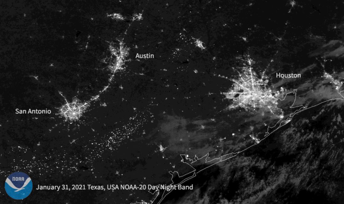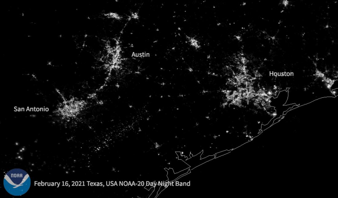 AUSTIN (KXAN) — Stunning images from above the Earth show the effect of power outages across Texas this week, which at one point left more than 4 million people without power.