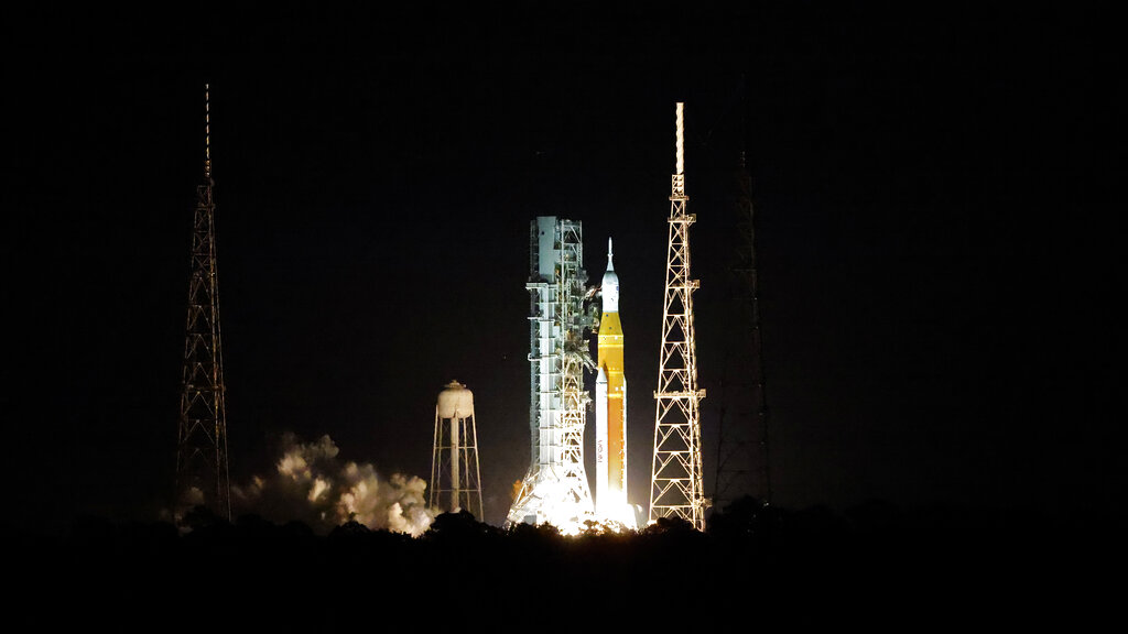 CAPE CANAVERAL, Fla. (AP) — NASA’s new moon rocket blasted off on its debut flight with three test dummies aboard Wednesday, bringing the U.S. a big step closer to putting astronauts back on the lunar surface for the first time since the end of the Apollo program 50 years ago.