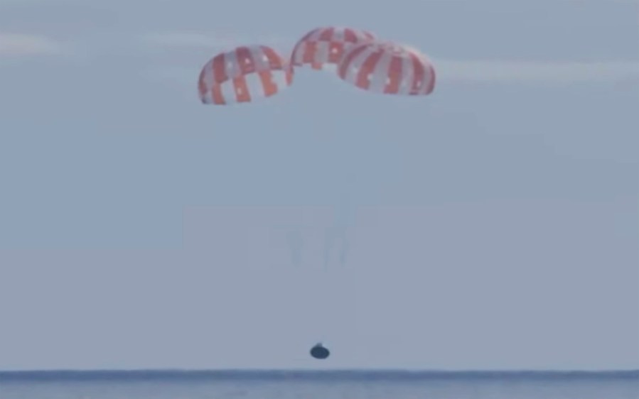 CAPE CANAVERAL, Fla. (AP) — NASA’s Orion capsule made a blisteringly fast return from the moon Sunday, parachuting into the Pacific off Mexico to conclude a test flight that should clear the way for astronauts on the next lunar flyby.
