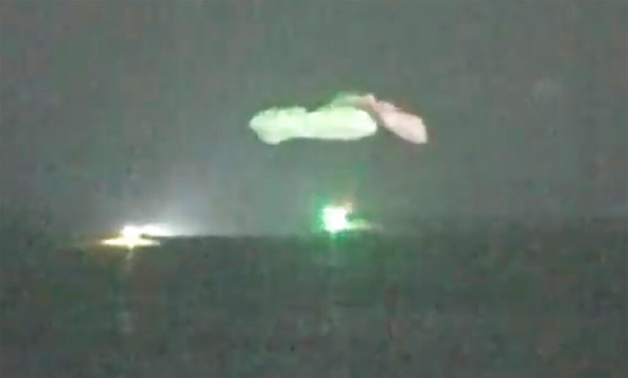 In this image made from NASA TV video, the SpaceX Dragon capsule parachutes into the Gulf of Mexico near the Florida Panhandle early Sunday, May 2, 2021. SpaceX returned four astronauts from the International Space Station on Sunday, making the first U.S. crew splashdown in darkness since the Apollo 8 moonshot. (NASA TV via AP)