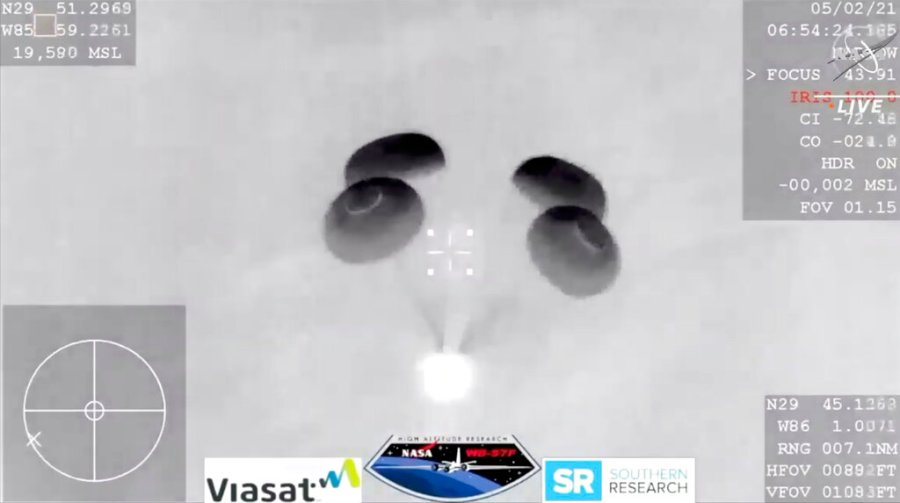 All four main parachutes could be seen deploying just before splashdown, which was also visible in the infrared.