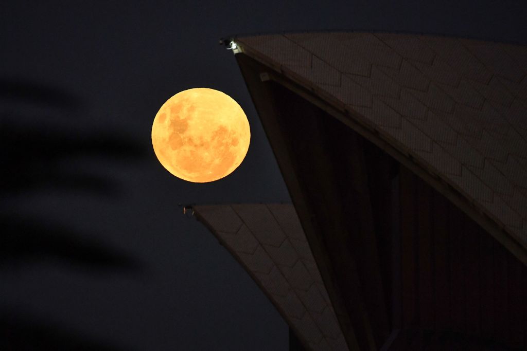 The Moon rises over the Opera House in Sydney on May 26, 2021, ahead of a total lunar eclipse as stargazers across the Pacific are casting their eyes skyward to witness a rare “Super Blood Moon”. (Photo by Saeed KHAN / AFP) (Photo by SAEED KHAN/AFP via Getty Images)