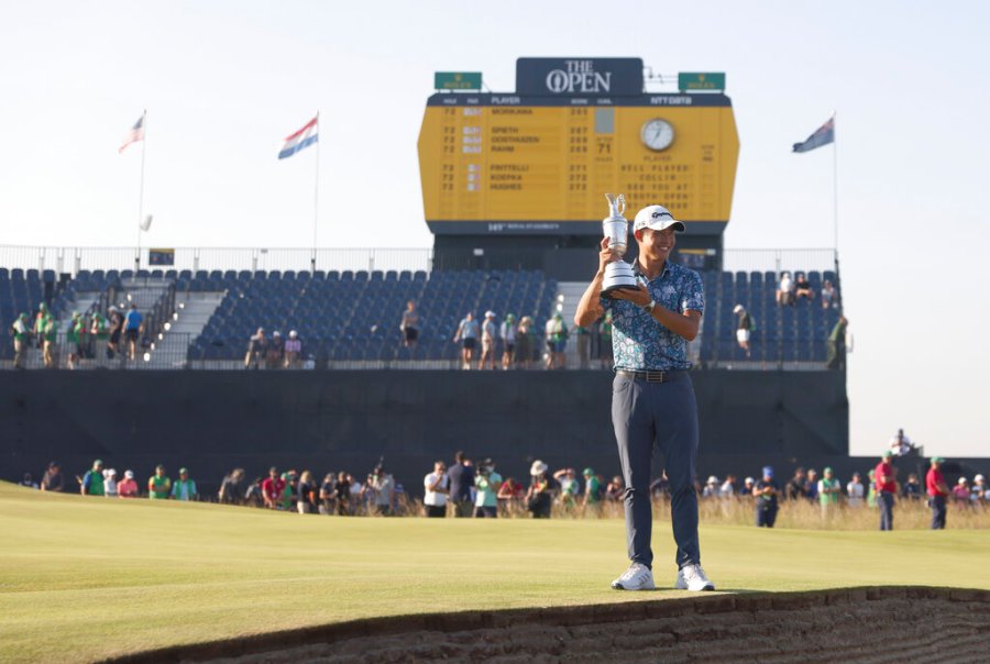 SANDWICH, England (AP) — Collin Morikawa gazed adoringly at the claret jug, thrust it into the air and then gave it a kiss, a two-time major champion at age 24.