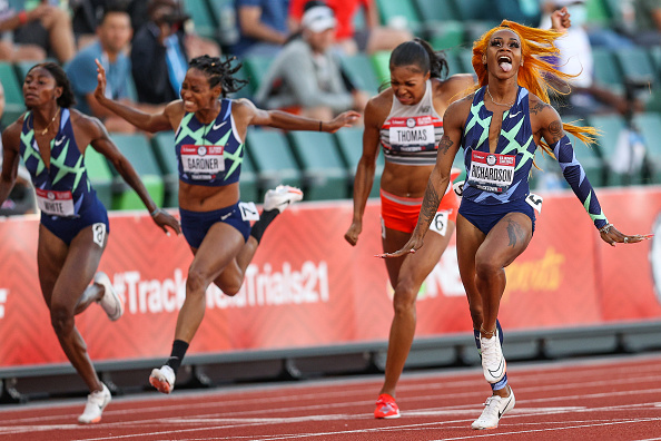 Richardson put on an eye-opening show at the Olympic trials June 19 in Eugene, Oregon — blowing away the field in the 100-meter semis in a wind-aided 10.64 seconds, then again in the final in 10.86.