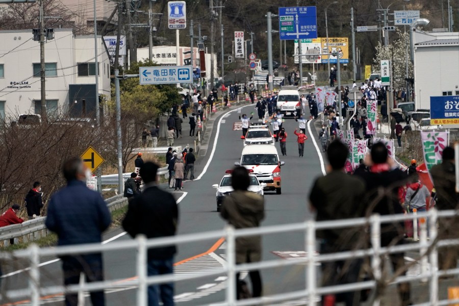 The relay began in northeastern Fukushima prefecture, the area that was devastated by the 2011 earthquake, tsunami and the meltdown of three nuclear reactors. About 18,000 died in the tragedy.