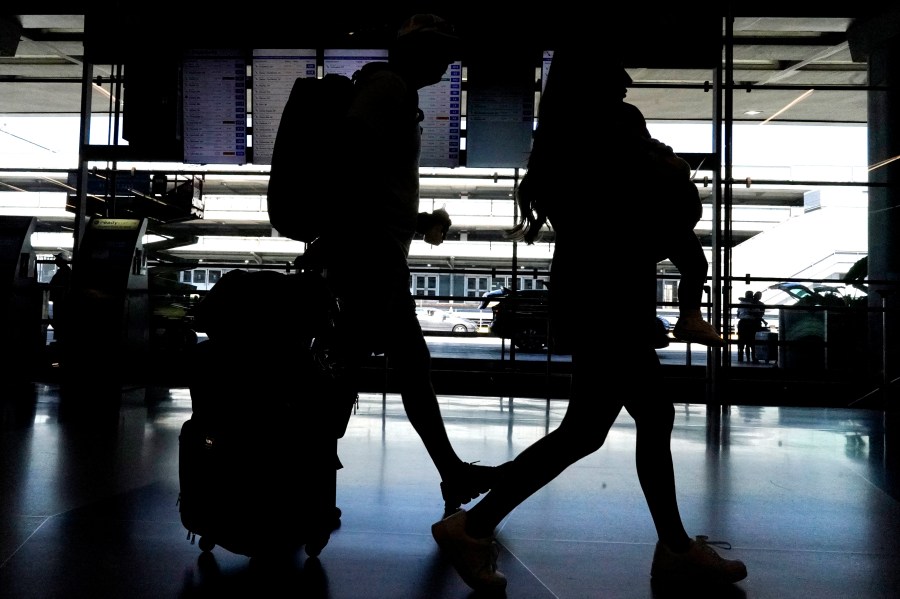 Travelers make their way through the Tom Bradley International Terminal at LAX on Wednesday, Aug. 30, 2023, in Los Angeles. With Labor Day weekend just days away, airports and roadways are expected to be busy as tens of thousands of Southern Californians travel out of town. (Dean Musgrove/The Orange County Register via AP)