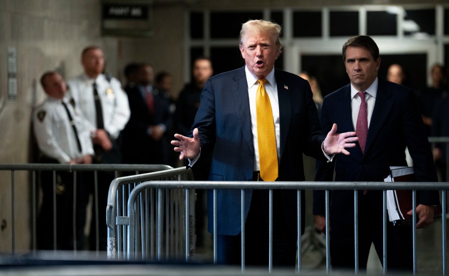 NEW YORK, NEW YORK – MAY 28: Former U.S. President Donald Trump speaks to the media as he arrives for his hush money trial at Manhattan Criminal Court on May 28, 2024 in New York City. Closing arguments are set to begin in former U.S. President Trump’s hush money trial. The former president faces 34 felony counts of falsifying business records in the first of his criminal cases to go to trial. (Photo by Steven Hirsch – Pool/Getty Images)