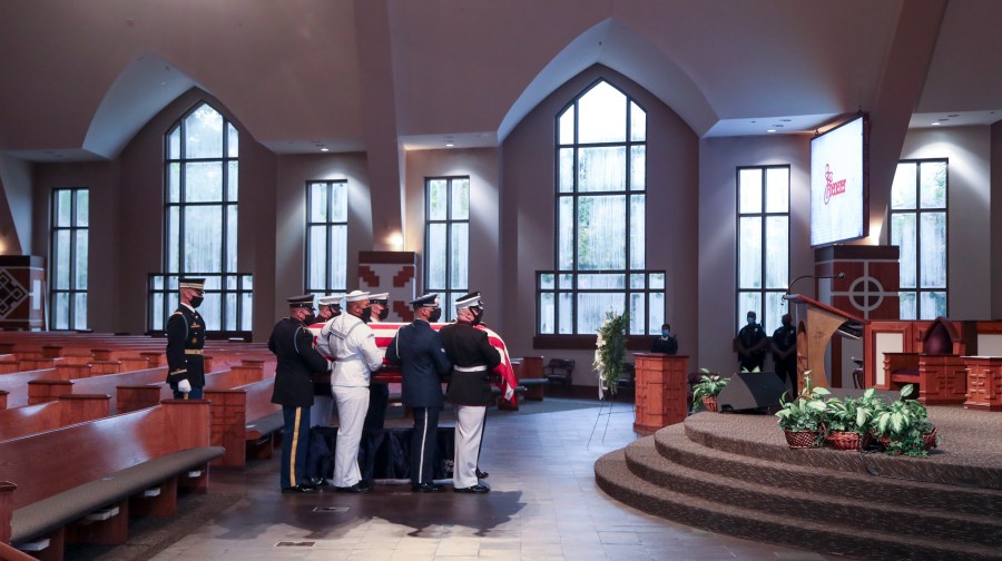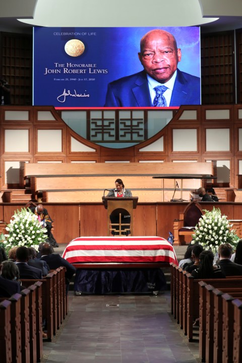 “He always believed in preaching the Gospel in word and in deed, insisting that hate and fear had to be answered with love and hope,” former President George W. Bush said from the pulpit. Lewis died July 17 at the age of 80.